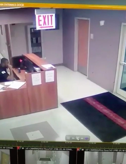 Jay Brown hizo un video con su smartphone de las imágenes de archivo de la cámara, mientras dice: “Yo vi esa cosa, yo sé que vi esa cosa”. Conforme el video avanza, y lo vemos hacer gestos hablando a la nada, el vigilante explica que en ese momento trató de calmarse para no entrar en pánico.