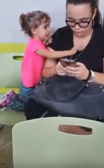 Se presume que la mujer estaba junto a la pequeña en una sala de espera, la niña ponía todo su esfuerzo para que su madre la viera, pero era en vano.