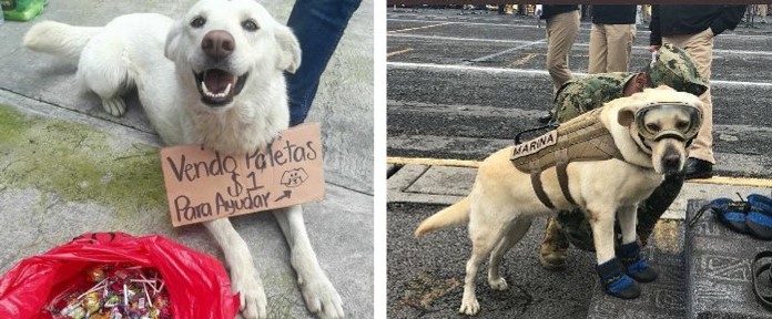 Los animales también hacen su buena parte. Frida es una perrita rescatista de primera, ya lleva 52 personas encontradas, también ayudó en el terremoto de Oaxaca, Haití, Ecuador, y en la explosión de la torre de Pemex.