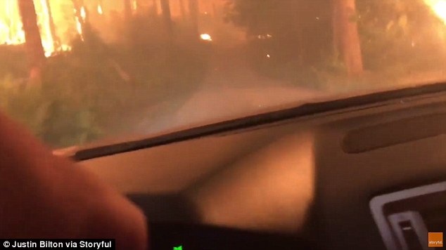 Aterradoras escenas capturadas con el teléfono de Justin Bilton, revelaron el angustiante momento en que el joven junto a su padre Charlie, de 70 años, trataban de escapar en medio de las incesantes llamas de un incendio forestal mientras iban en su automóvil.